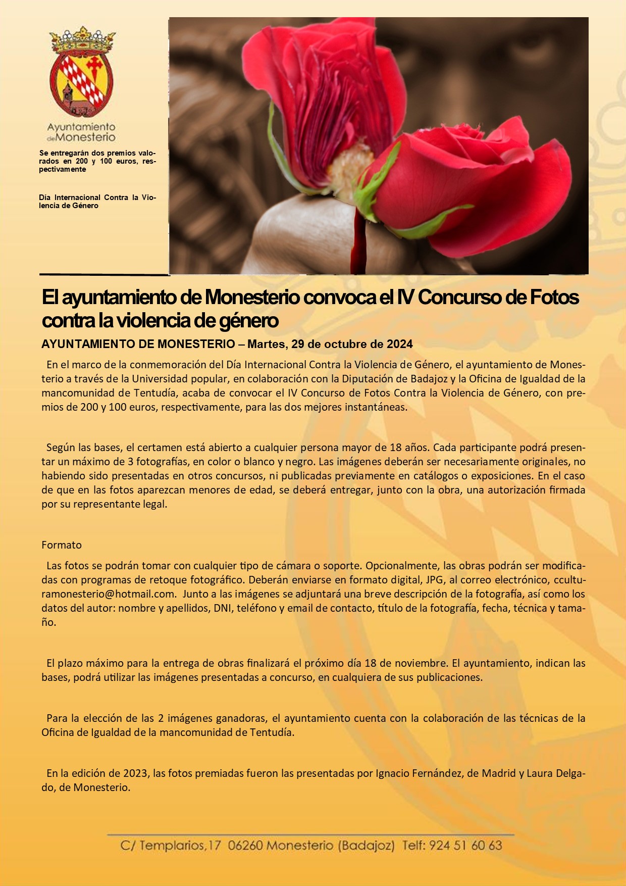 El ayuntamiento de Monesterio convoca el IV Concurso de Fotos contra la violencia de género