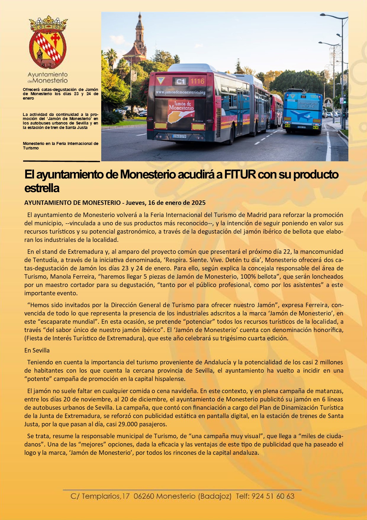 El ayuntamiento de Monesterio acudirá a FITUR con su producto estrella