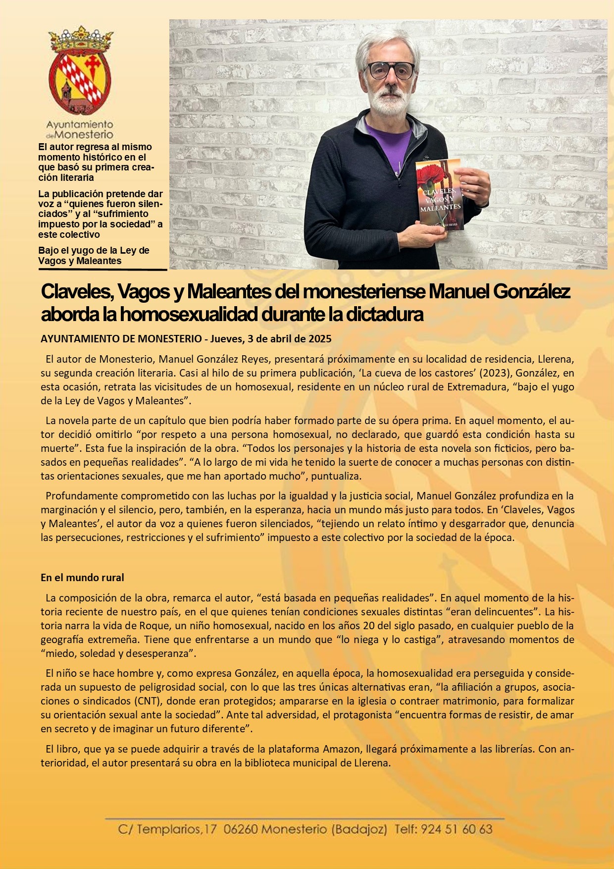 Claveles, Vagos y Maleantes del monesteriense Manuel González aborda la homosexualidad durante la dictadura