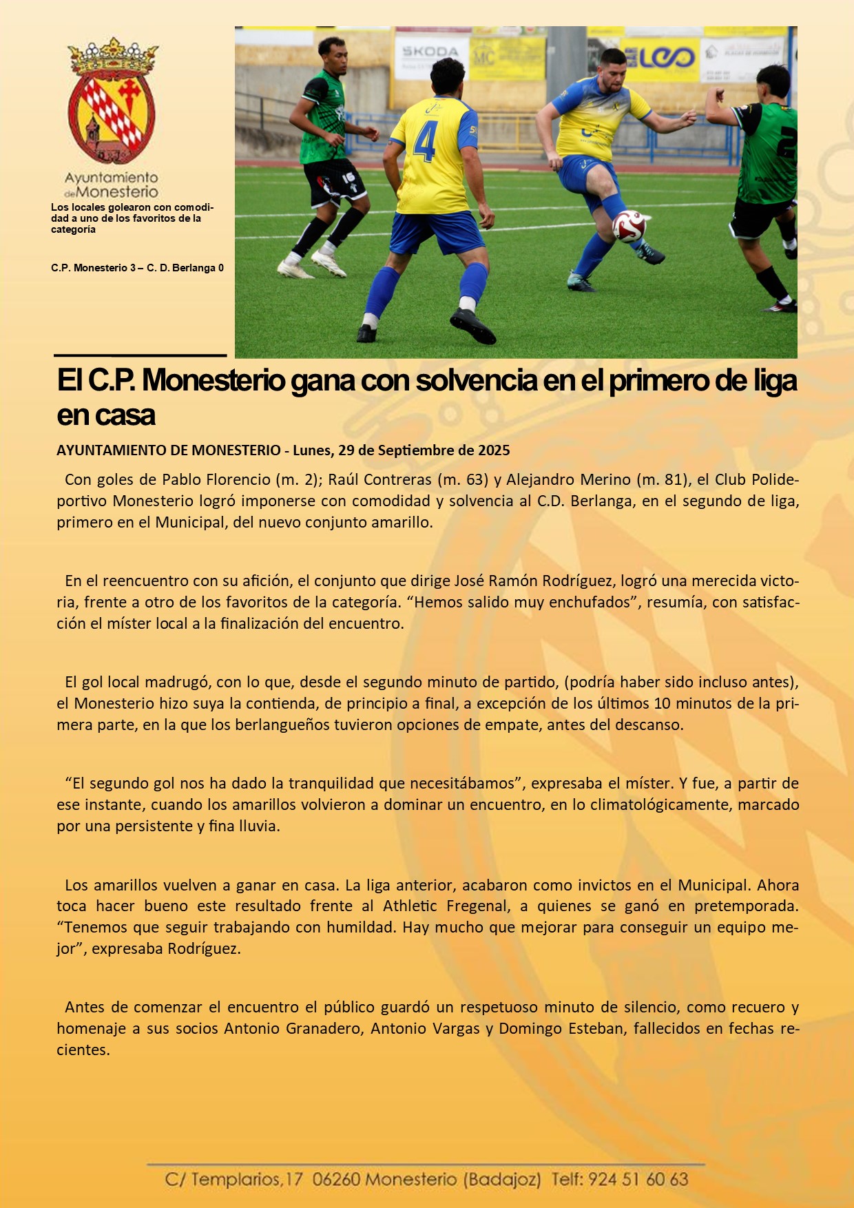 El C.P. Monesterio gana con solvencia en el primero de liga en casa