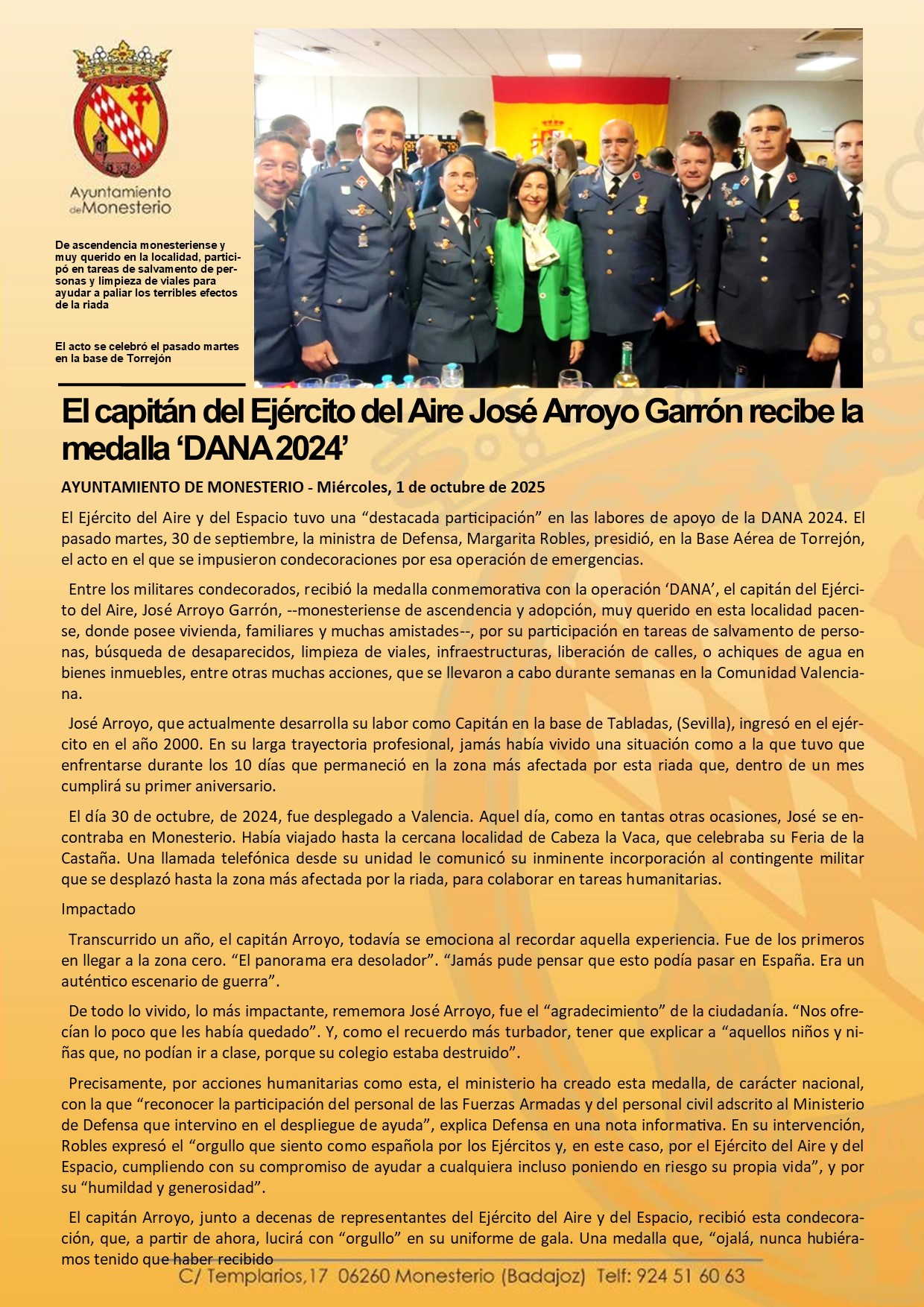 El capitán del Ejército del Aire José Arroyo Garrón recibe la medalla ‘DANA 2024’