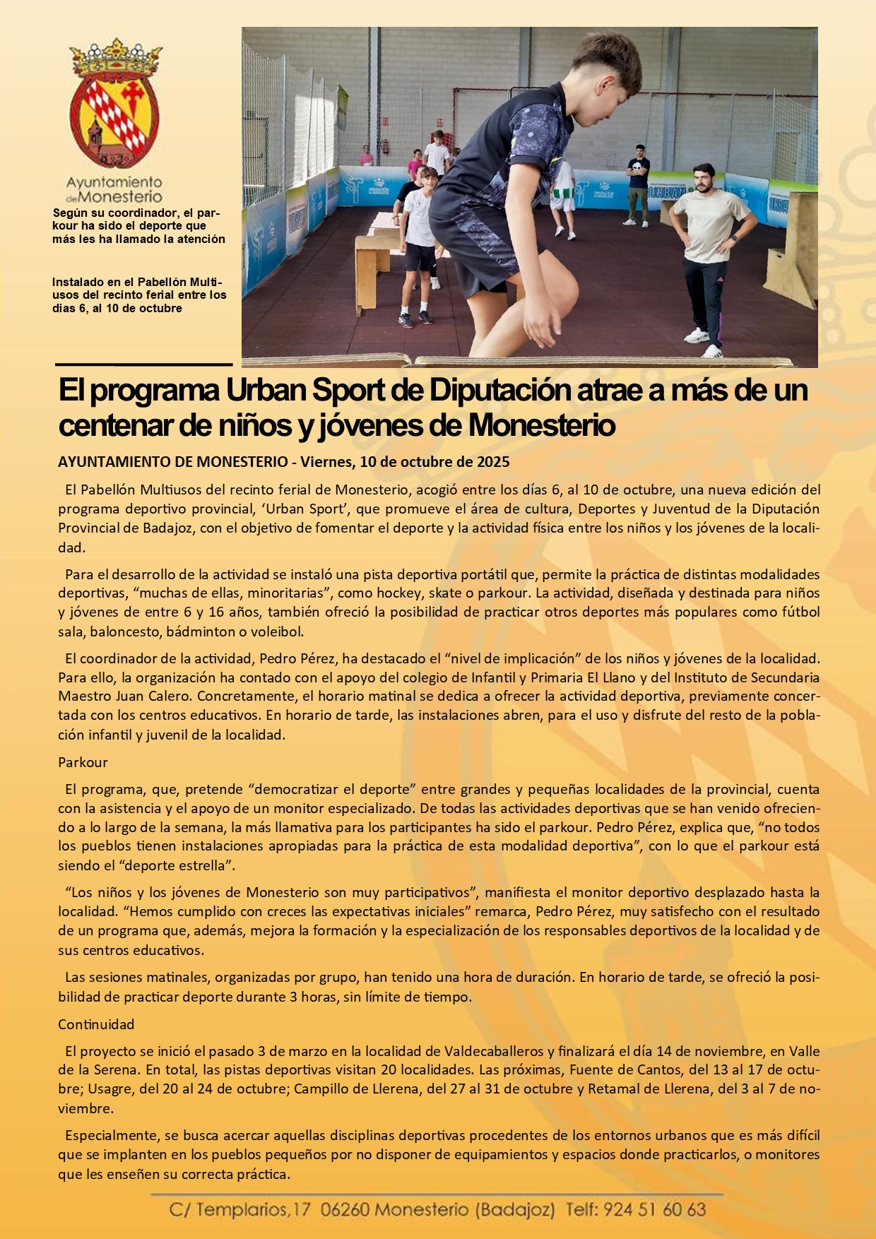 El programa Urban Sport de Diputación atrae a más de un centenar de niños y jóvenes de Monesterio