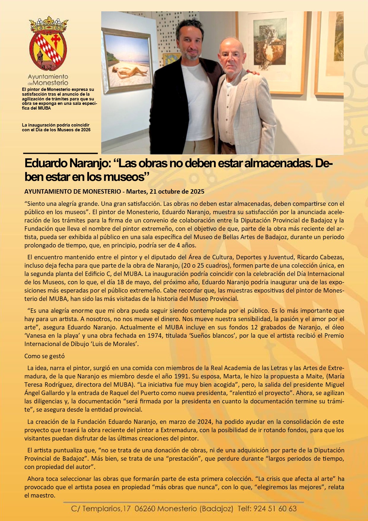 Eduardo Naranjo: “Las obras no deben estar almacenadas. Deben estar en los museos”