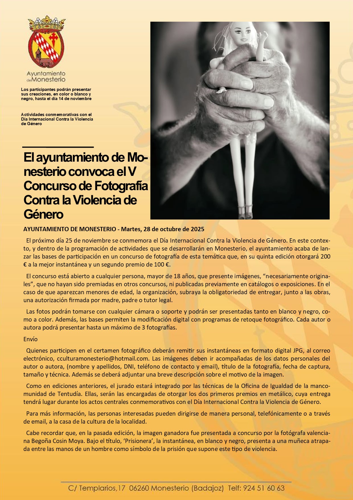 El ayuntamiento de Monesterio convoca el V Concurso de Fotografía Contra la Violencia de Género