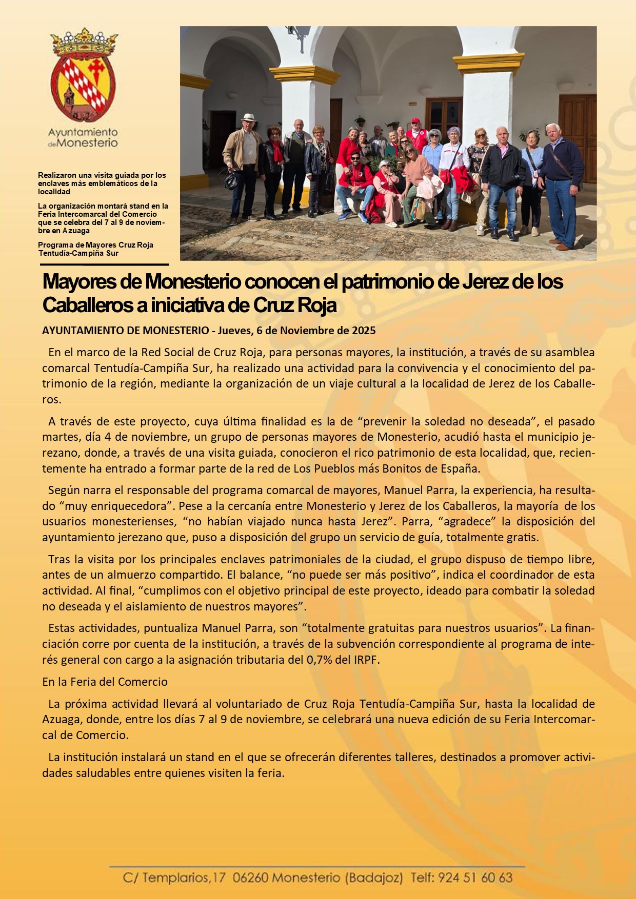 Mayores de Monesterio conocen el patrimonio de Jerez de los Caballeros a iniciativa de Cruz Roja