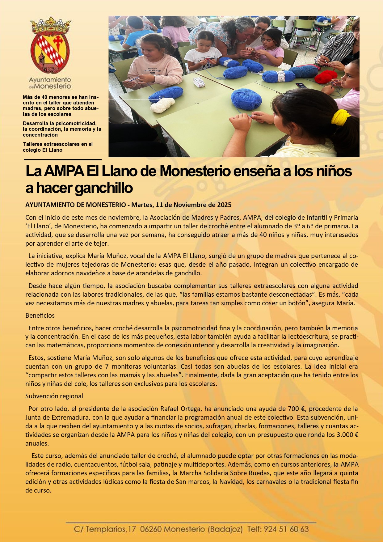 La AMPA El Llano de Monesterio enseña a los niños a hacer ganchillo