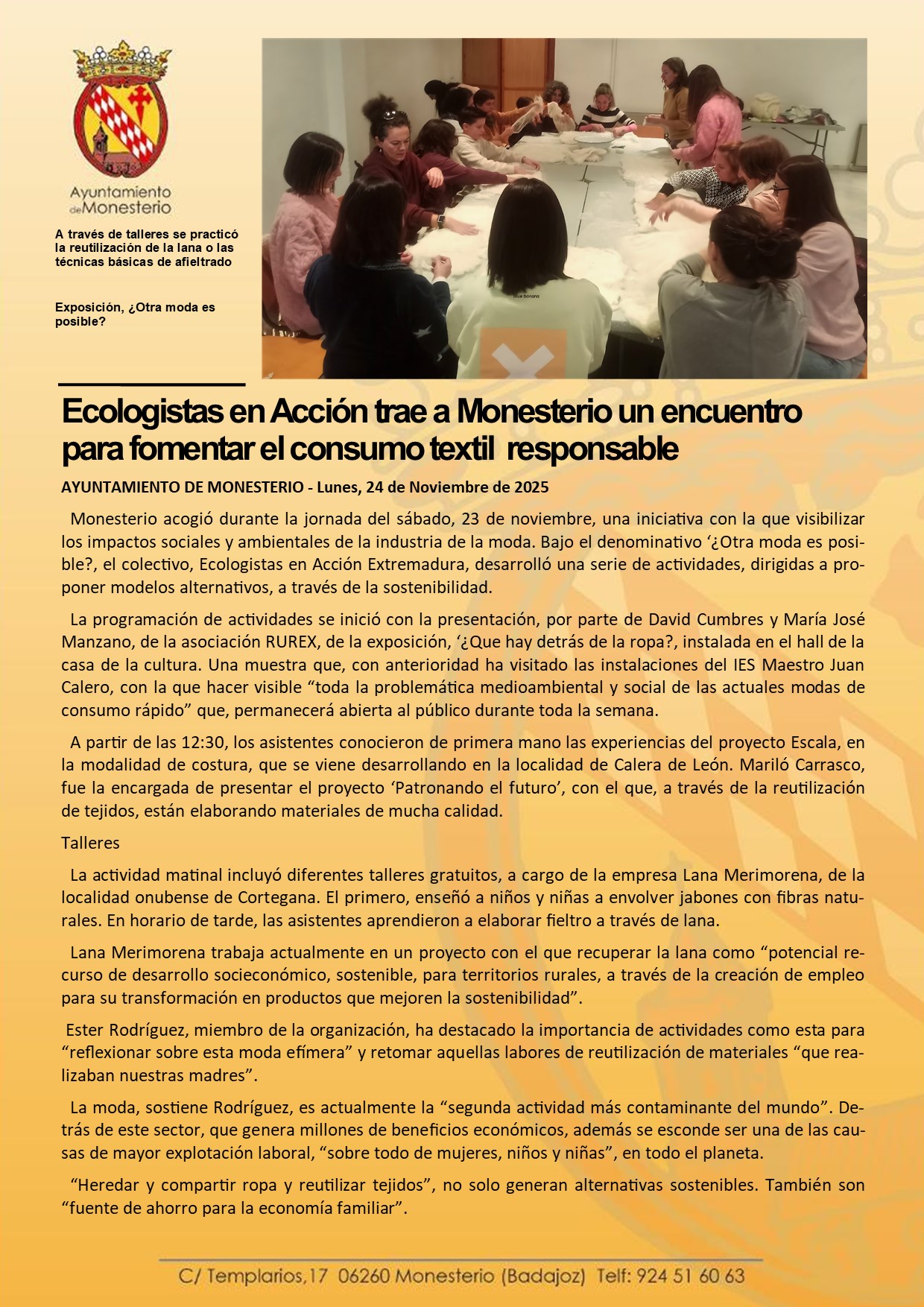 Ecologistas en Acción trae a Monesterio un encuentro para fomentar el consumo textil responsable