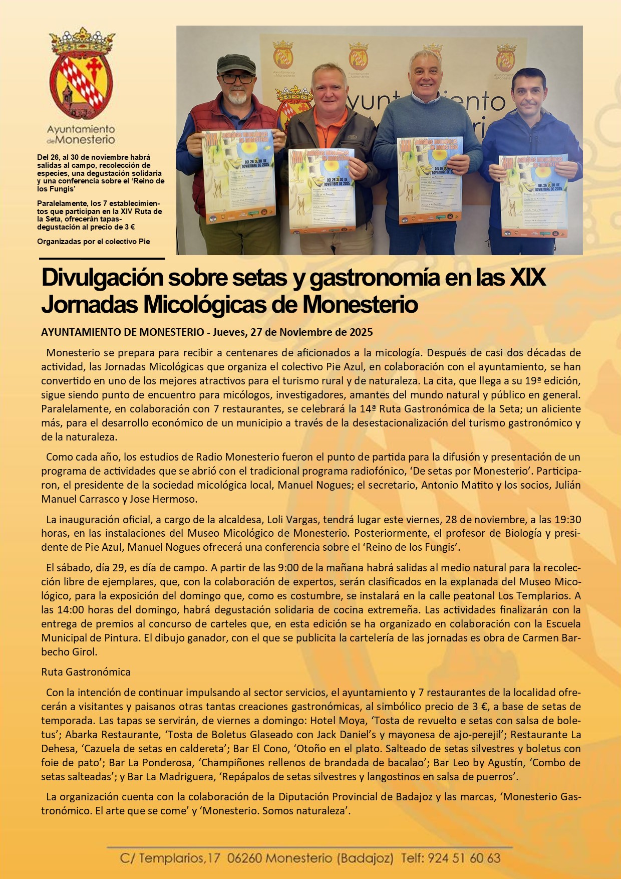 Divulgación sobre setas y gastronomía en las XIX Jornadas Micológicas de Monesterio