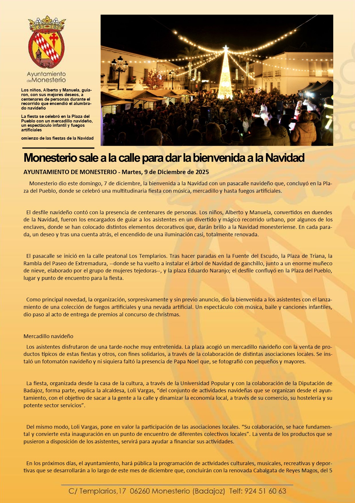 Monesterio sale a la calle para dar la bienvenida a la Navidad