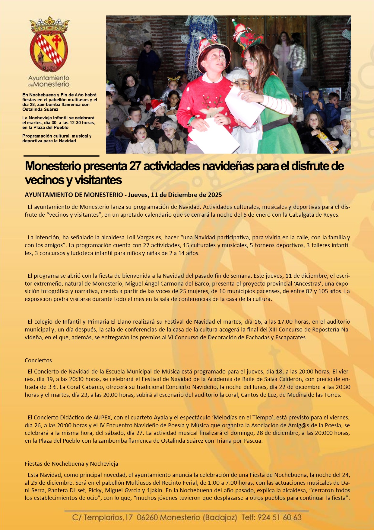 Monesterio presenta 27 actividades navideñas para el disfrute de vecinos y visitantes