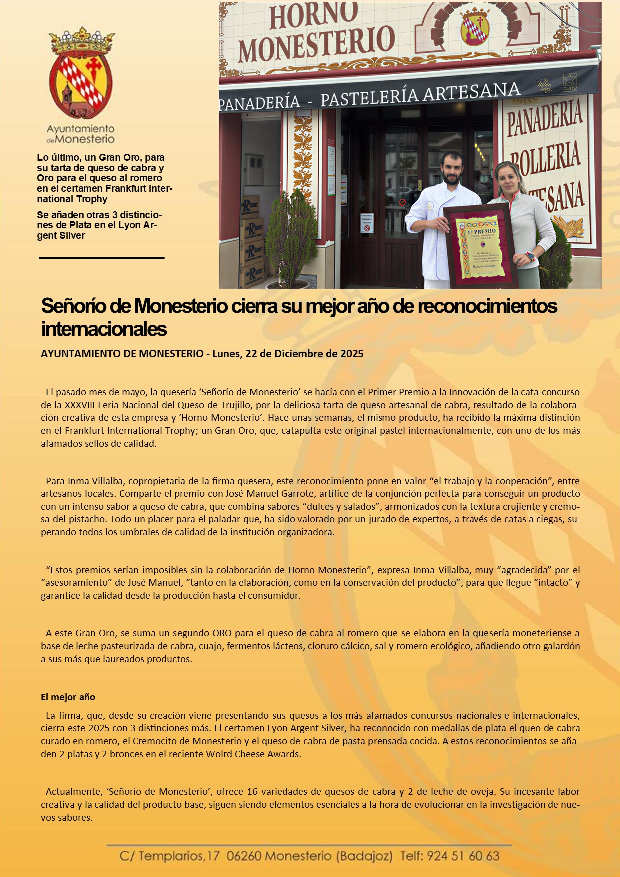 Señorío de Monesterio cierra su mejor año de reconocimientos internacionales