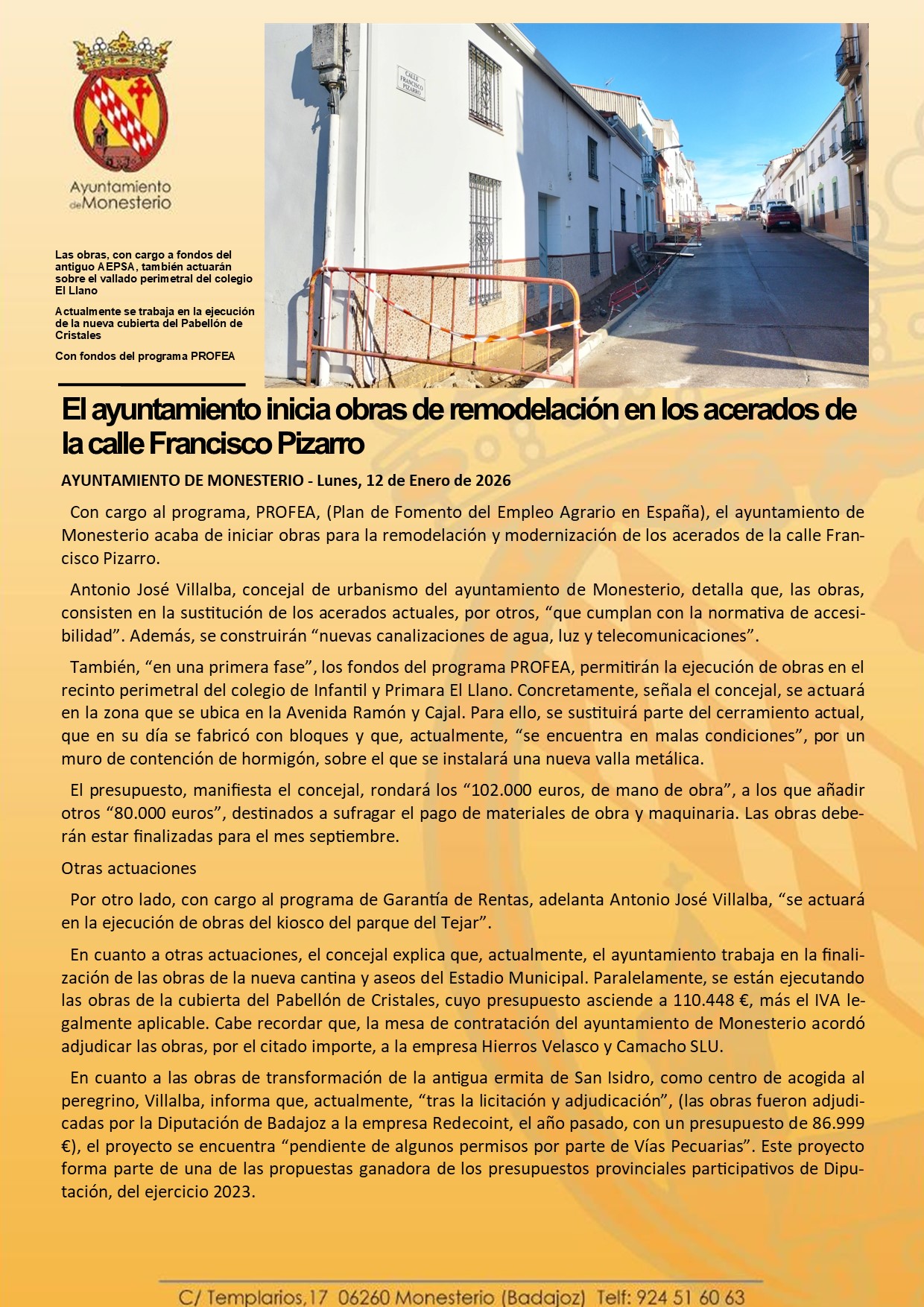 El ayuntamiento inicia obras de remodelación en los acerados de la calle Francisco Pizarro