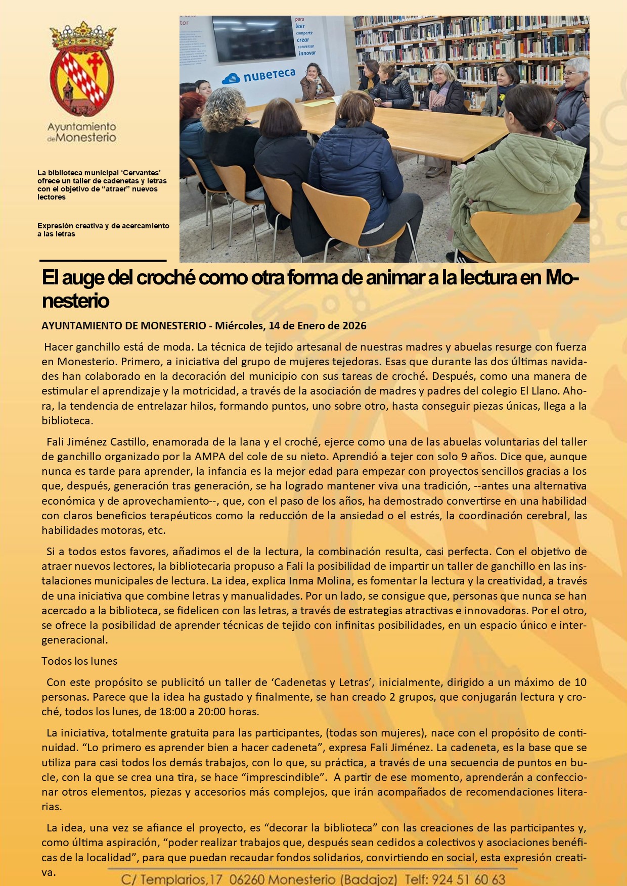 El auge del croché como otra forma de animar a la lectura en Monesterio