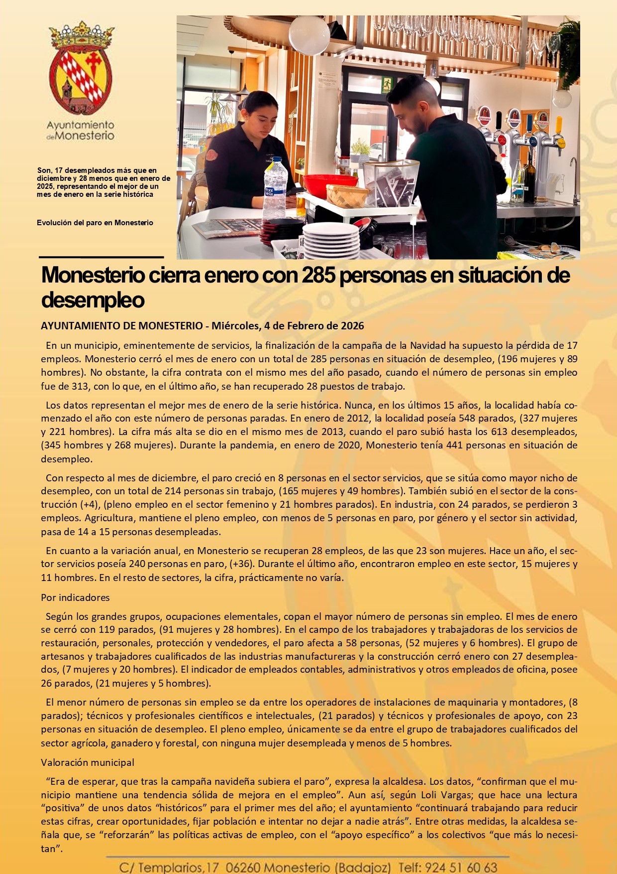 Monesterio cierra enero con 285 personas en situación de desempleo