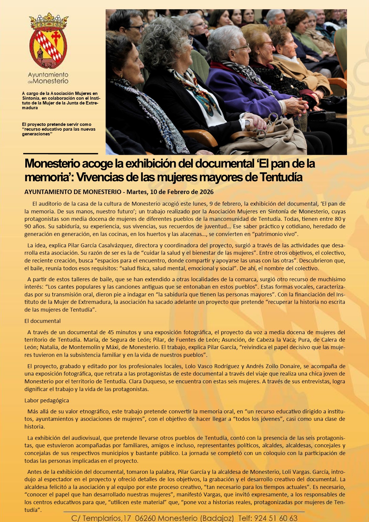 Monesterio acoge la exhibición del documental ‘El pan de la memoria’: Vivencias de las mujeres mayores de Tentudía