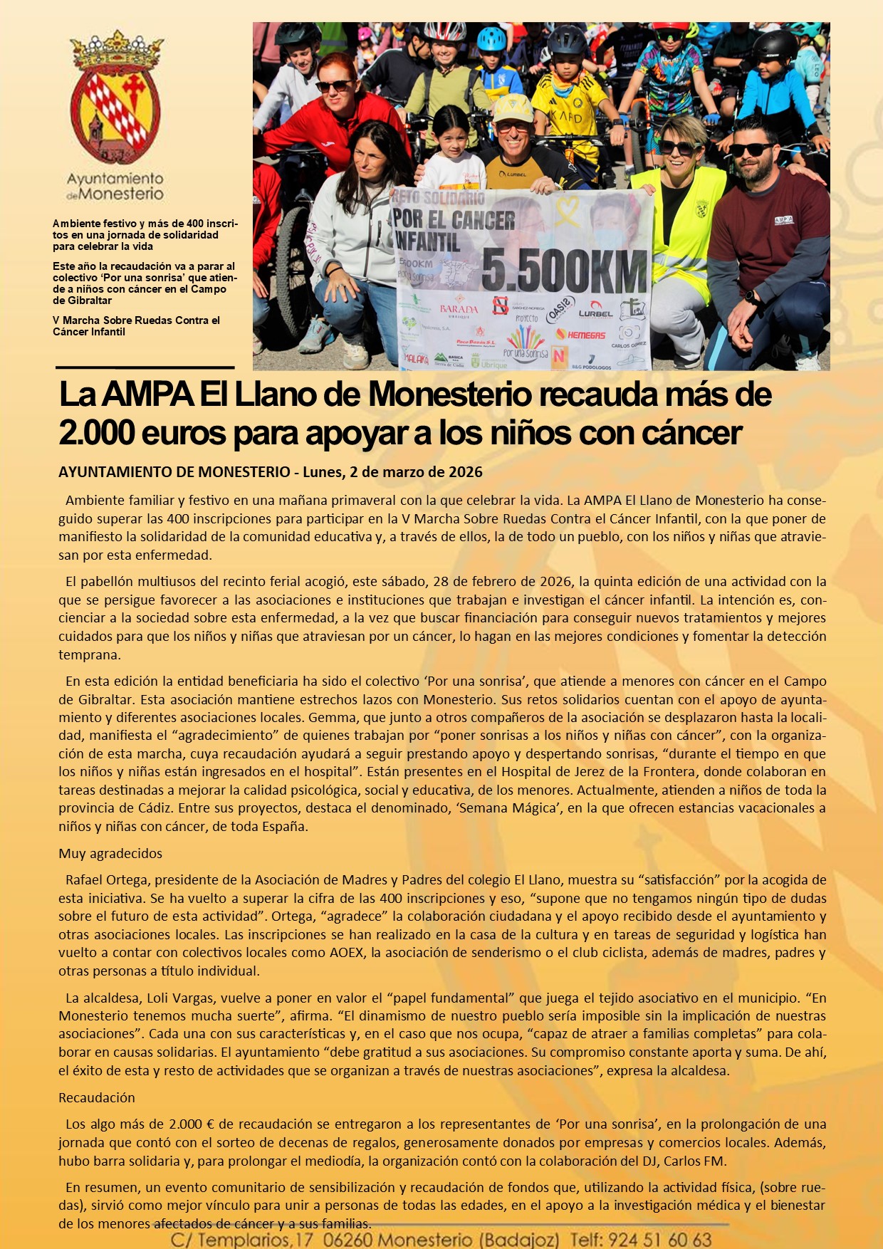 La AMPA El Llano de Monesterio recauda más de 2.000 euros para apoyar a los niños con cáncer