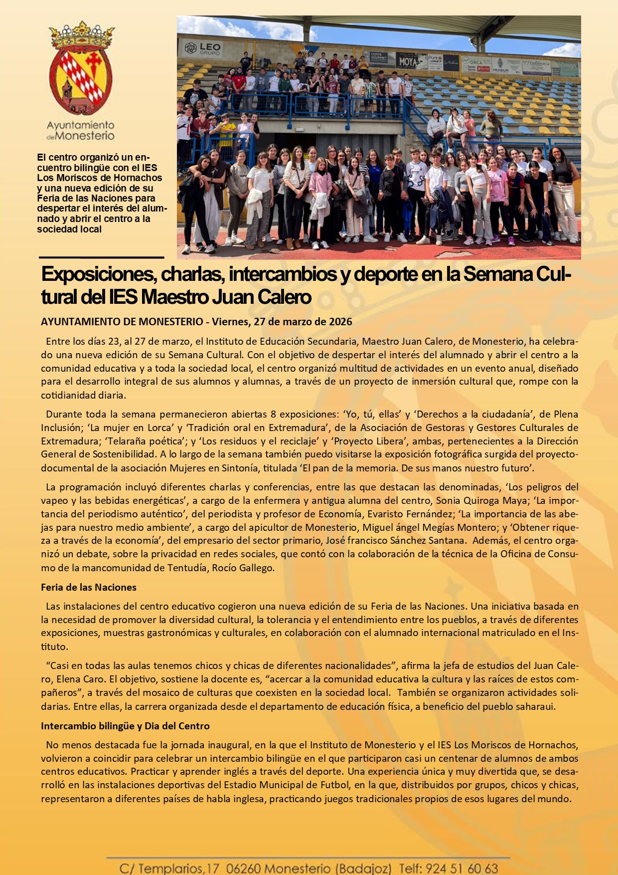 Exposiciones, charlas, intercambios y deporte en la Semana Cultural del IES Maestro Juan Calero