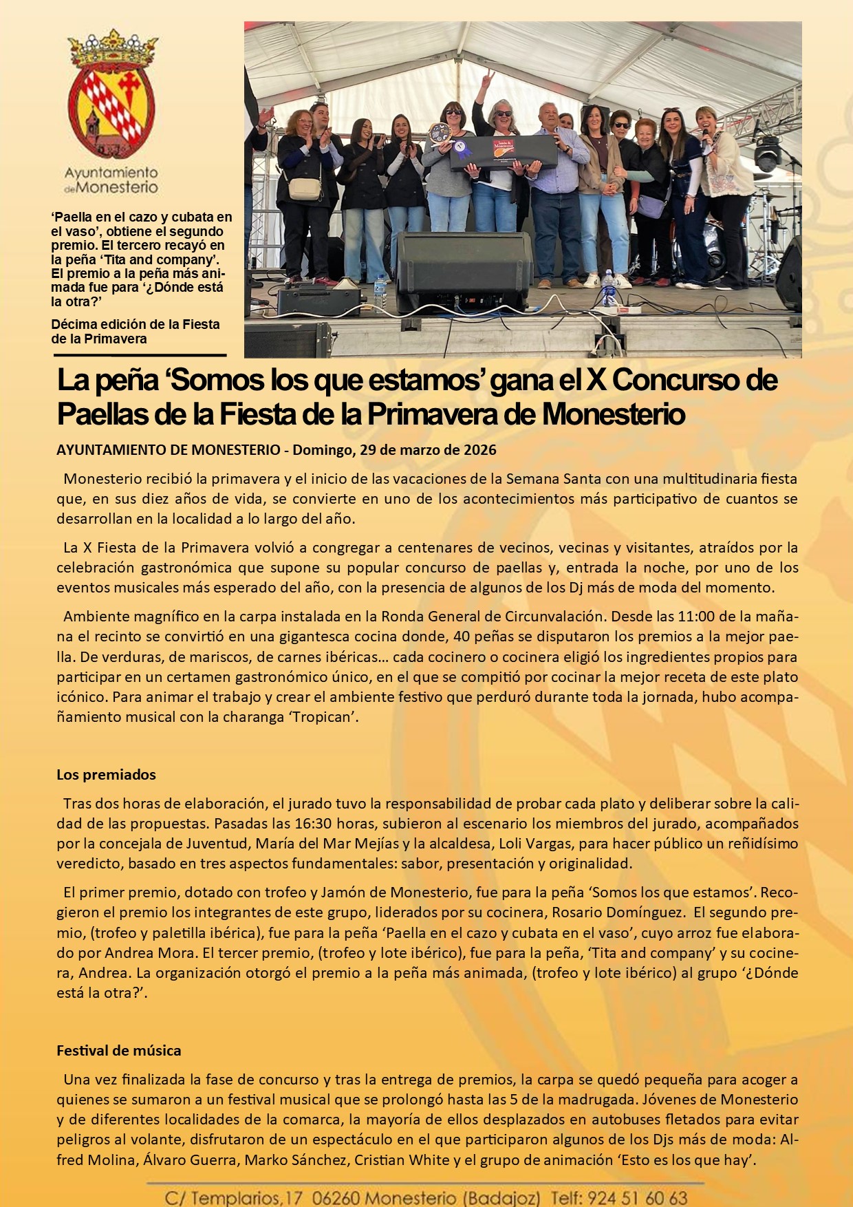 La peña ‘Somos los que estamos’ gana el X Concurso de Paellas de la Fiesta de la Primavera de Monesterio