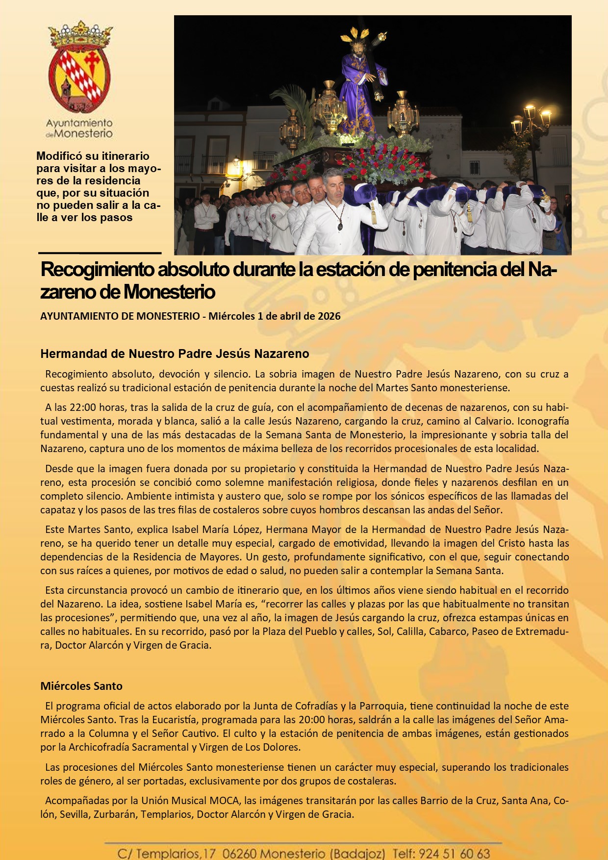 Recogimiento absoluto durante la estación de penitencia del Nazareno de Monesterio