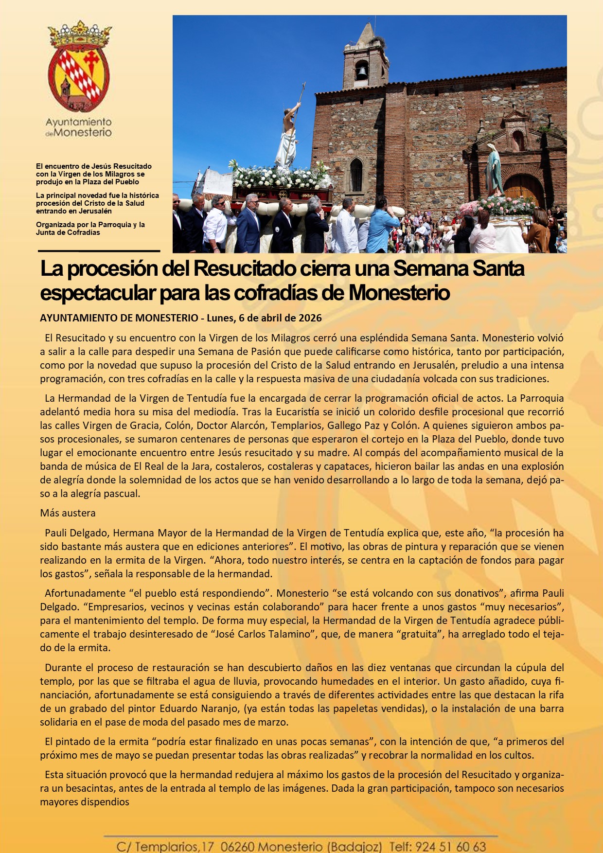 La procesión del Resucitado cierra una Semana Santa espectacular para las cofradías de Monesterio
