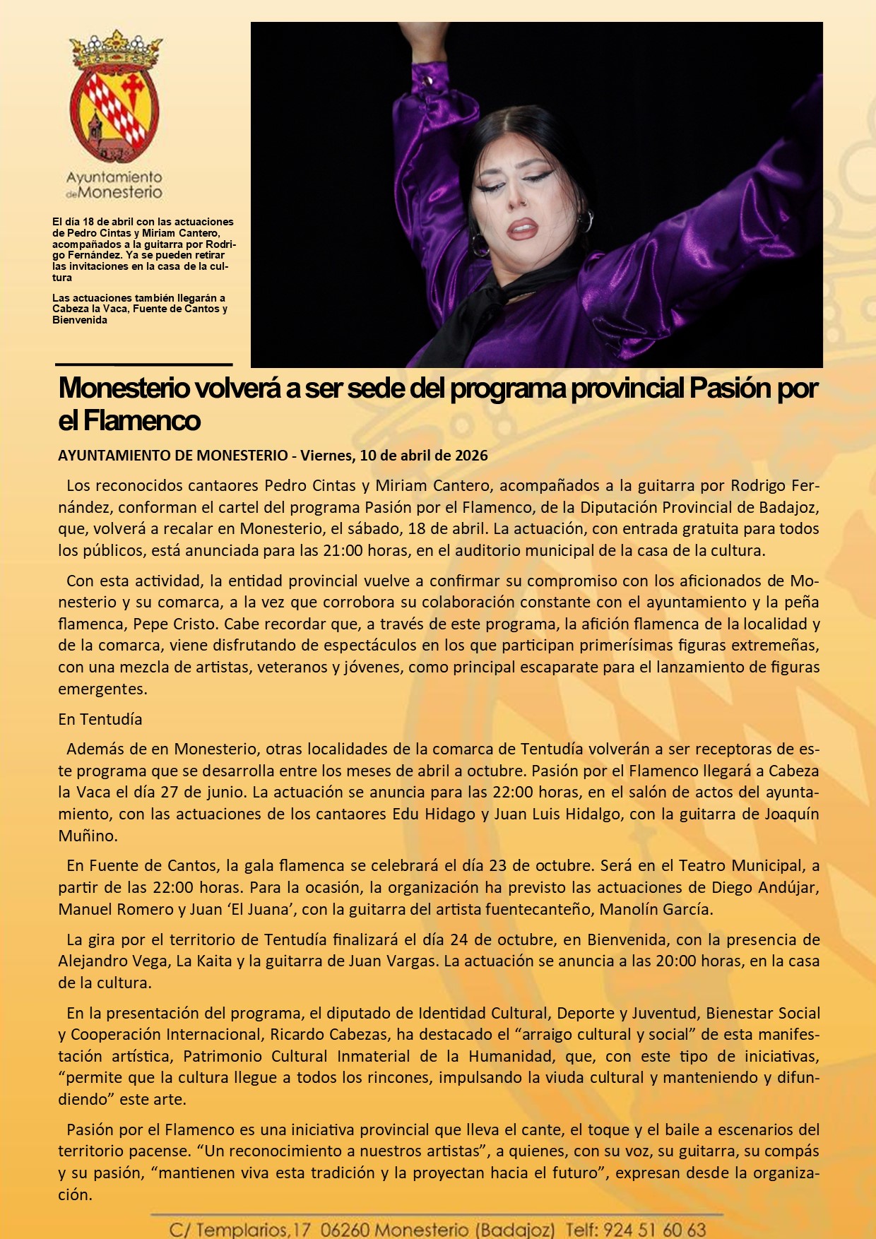 Monesterio volverá a ser sede del programa provincial Pasión por el Flamenco