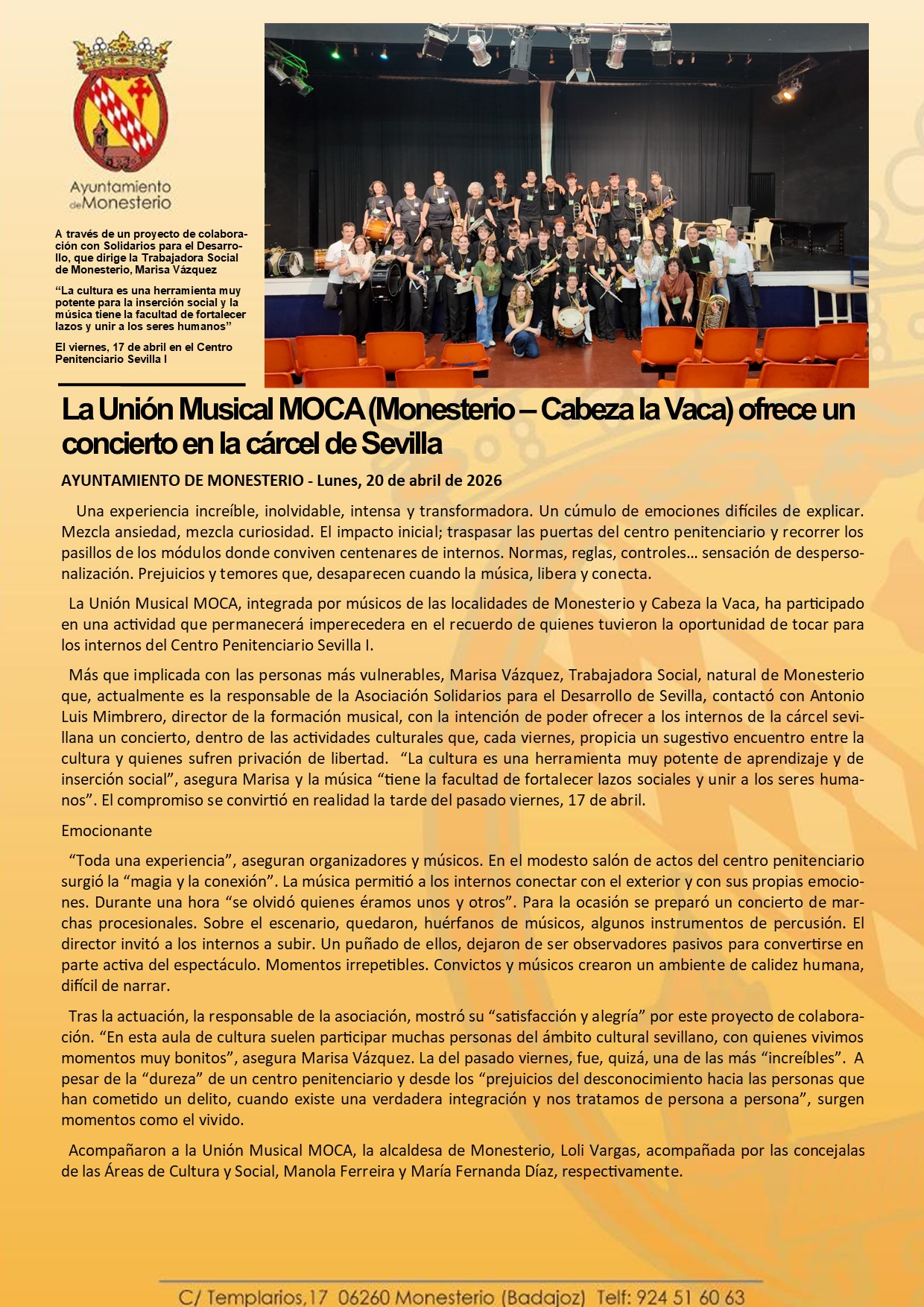 La Unión Musical MOCA (Monesterio – Cabeza la Vaca) ofrece un concierto en la cárcel de Sevilla