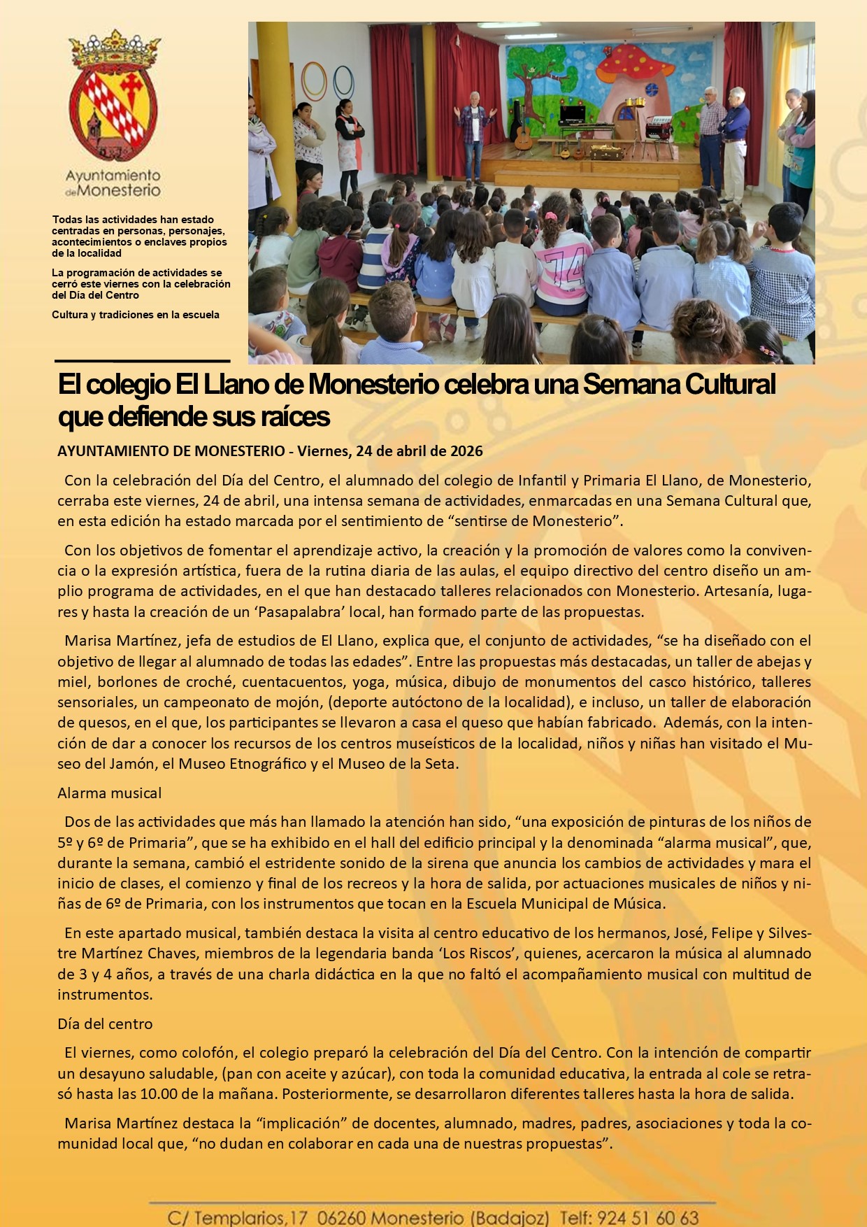 El colegio El Llano de Monesterio celebra una Semana Cultural que defiende sus raíces