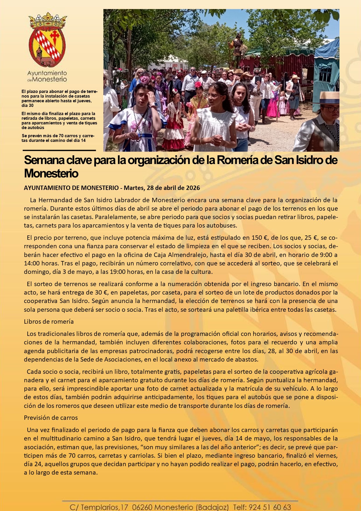 Semana clave para la organización de la Romería de San Isidro de Monesterio