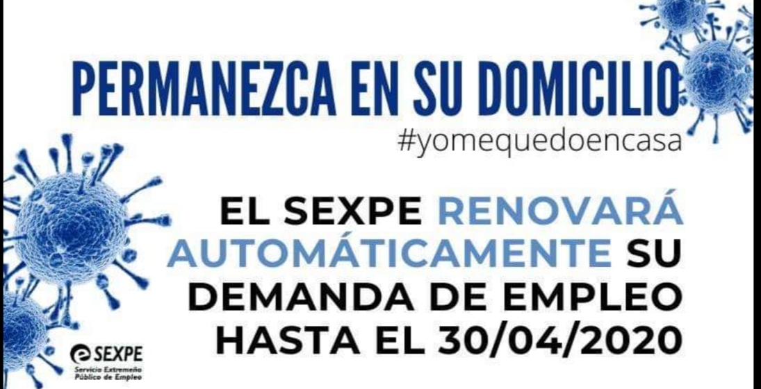 "Permanezca en su domicilio. El SEXPE renovará automaticamente su demanda de empleo hasta el 30 de abril" .