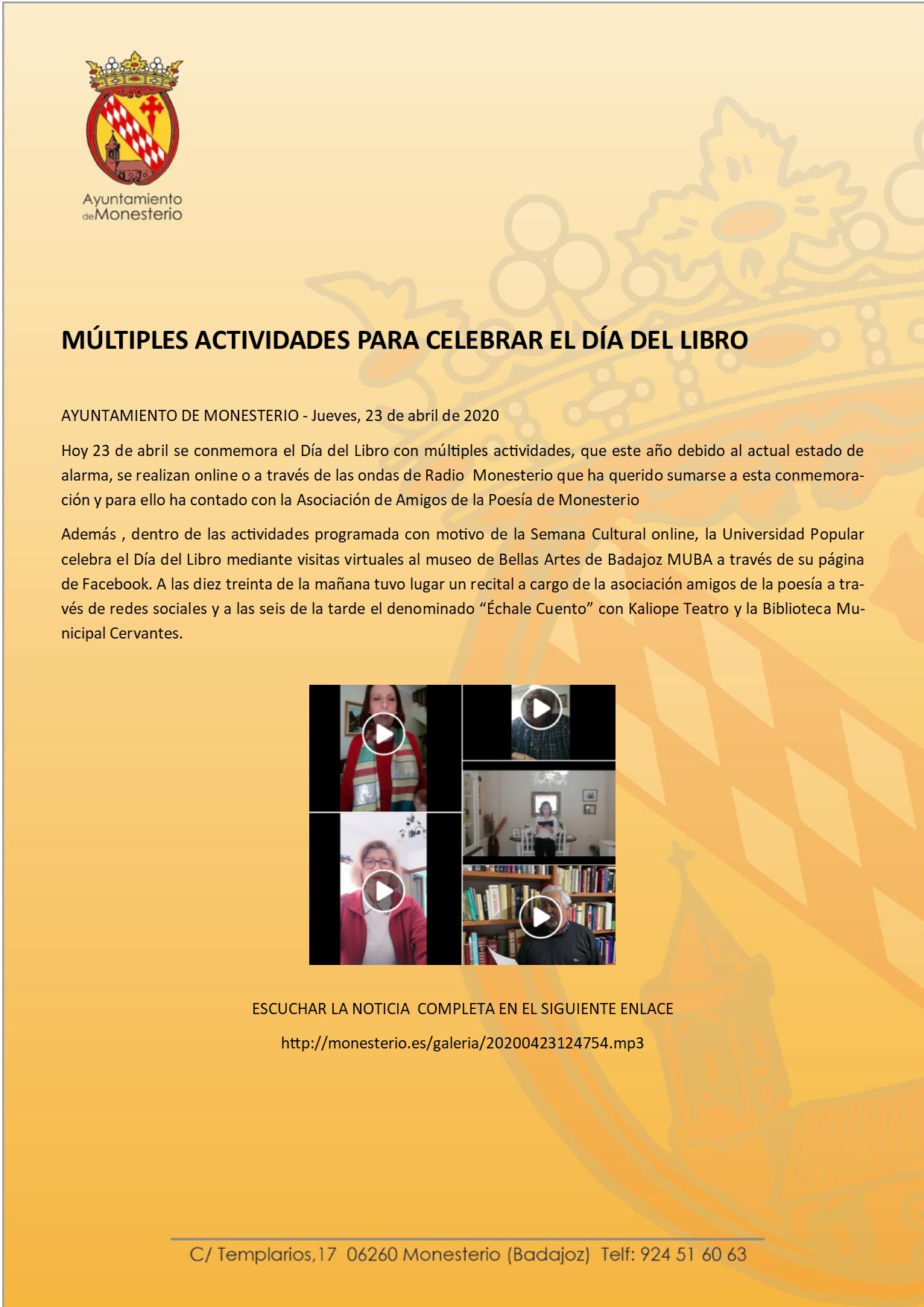 RADIO MONESTERIO - Múltiples actividades para celebrar el Día del Libro