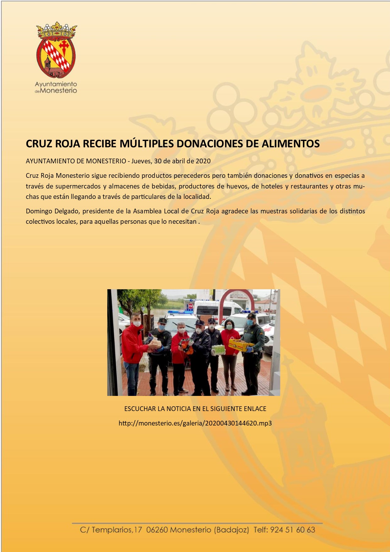 RADIO MONESTERIO -Cruz Roja recibe múltiples donaciones de alimentos