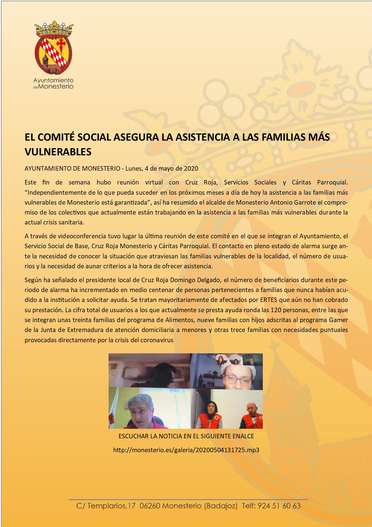 RADIO MONESTERIO - El Comité Social asegura la asistencia a las familas más vulnerable