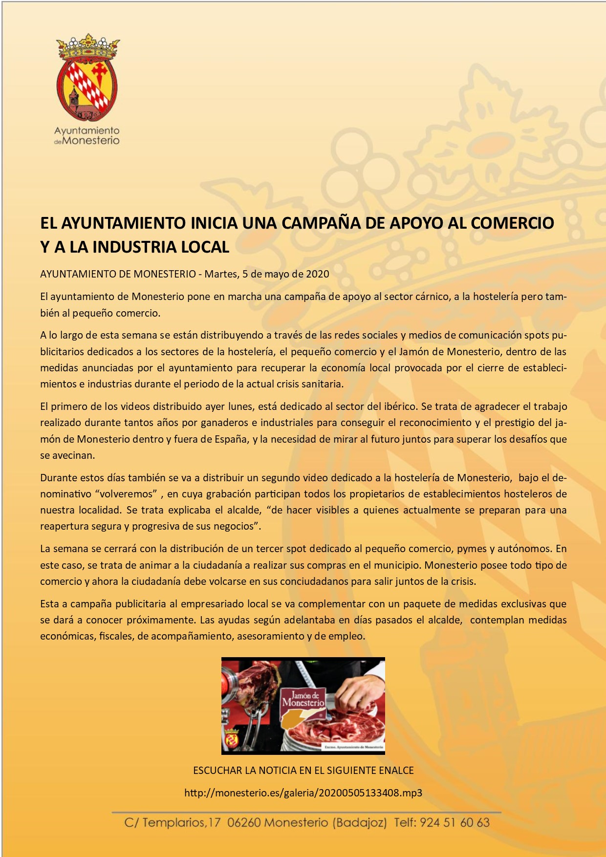 RADIO MONESTERIO - El ayuntamiento inicia una campaña de apoyo al comercio y a la industria local