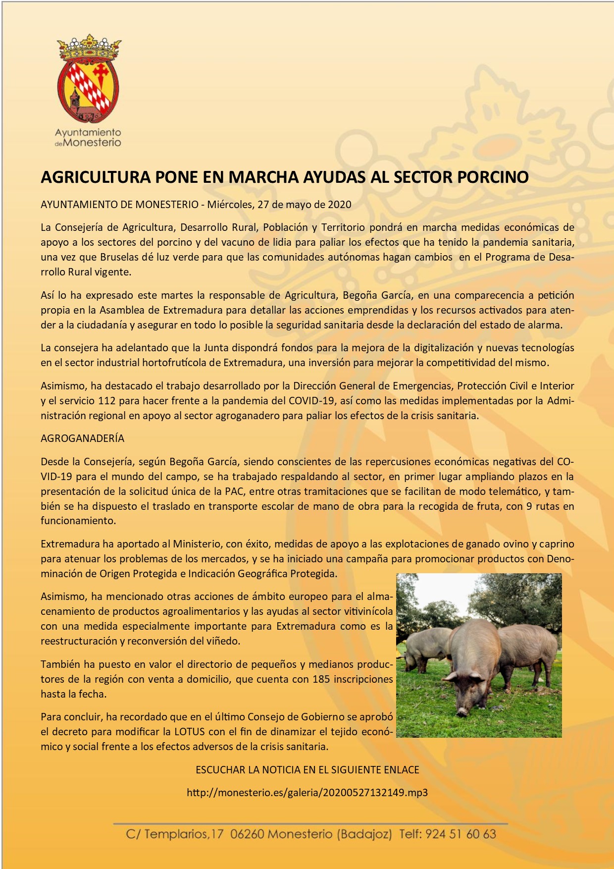 RADIO MONESTERIO -Agricultura pone en marcha ayudas al sector porcino