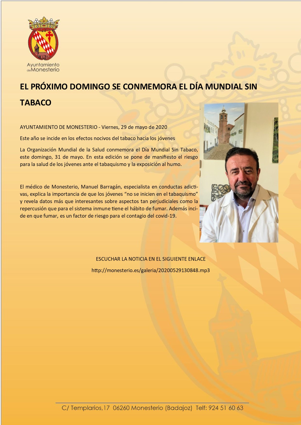 RADIO MONESTERIO - El próximo domingo se conmemora el Día Mundial Sin Tabaco
