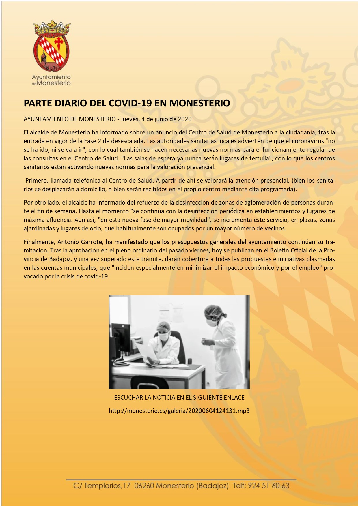RADIO MONESTERIO - Parte diario del Covid-19 en Monesterio