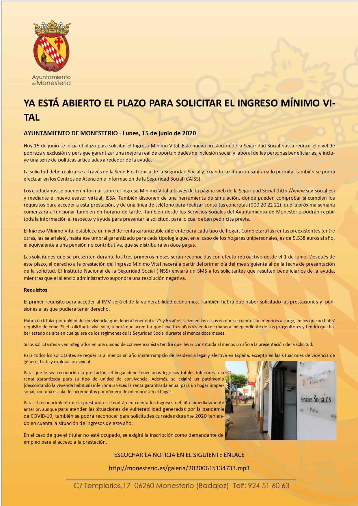 SERVIVIOS SOCIALES - Ya está abierto el plazo para solicitar el Ingreso Mínimo Vital