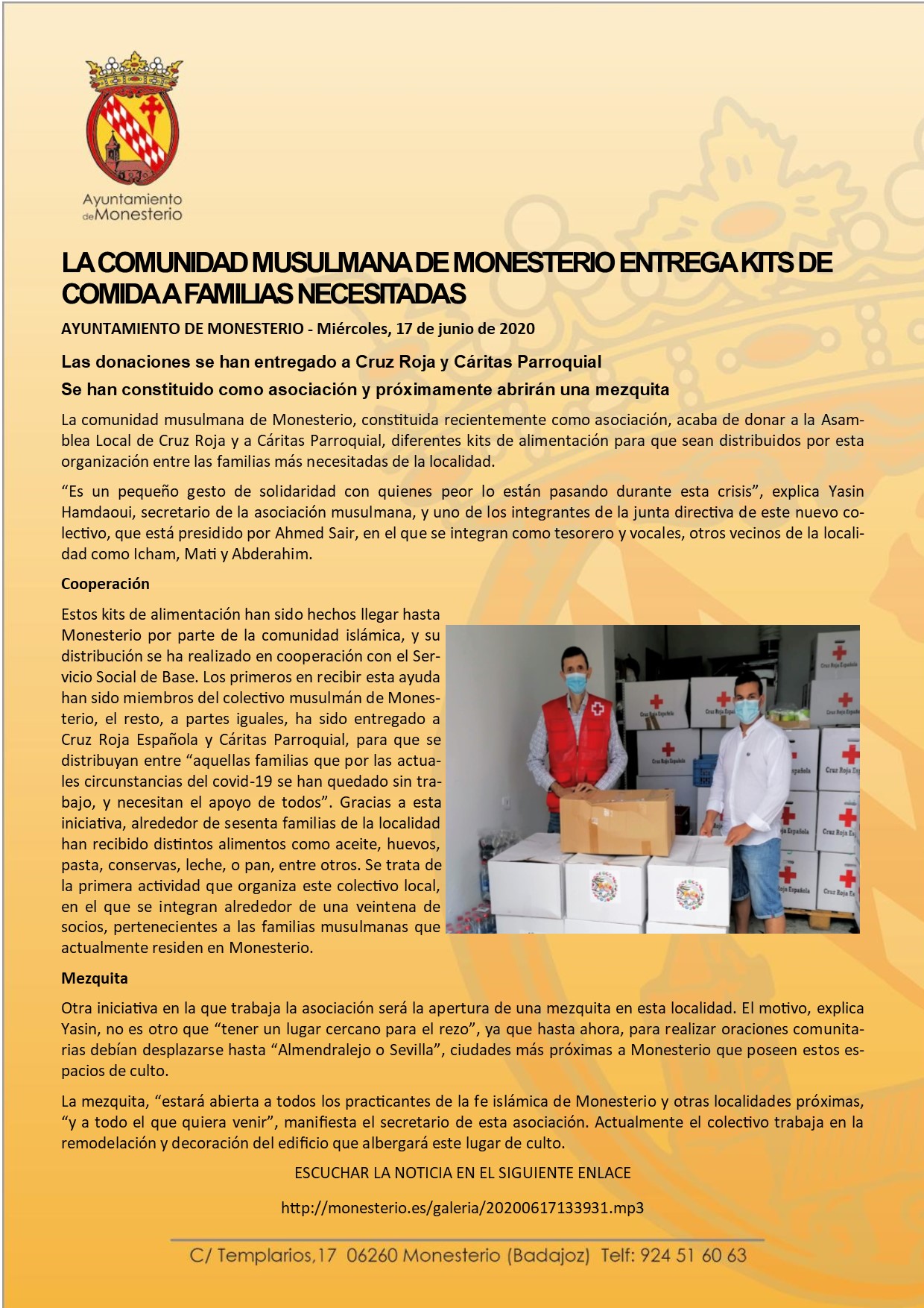 La comunidad musulmana de Monesterio entrega kits de comida a familias necesitadas