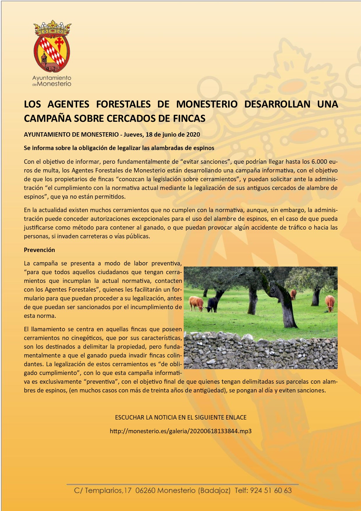 Los Agentes Forestales de Monesterio desarrollan una campaña sobre cercados de fincas