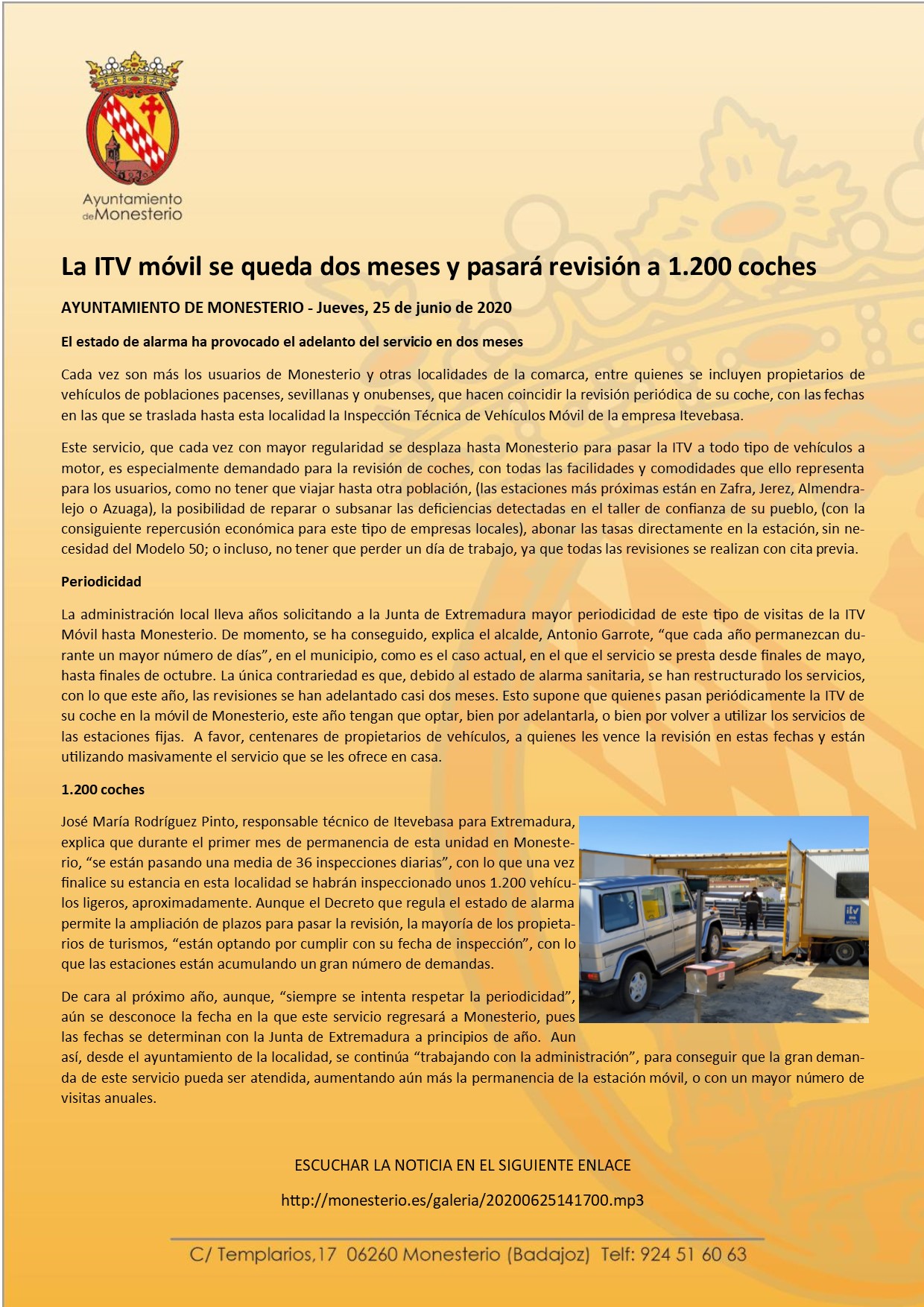 La ITV móvil se queda dos meses y pasará revisión a 1.200 coches