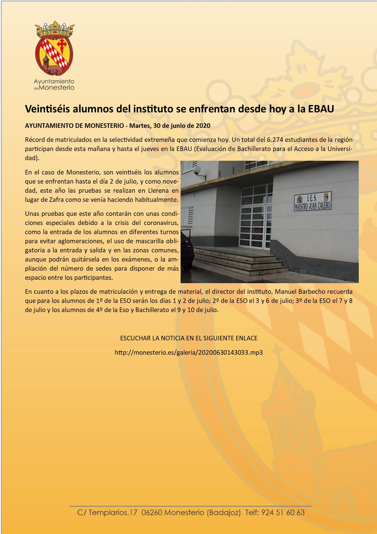 Veintiséis alumnos del instituto se enfrentan desde hoy a la EBAU