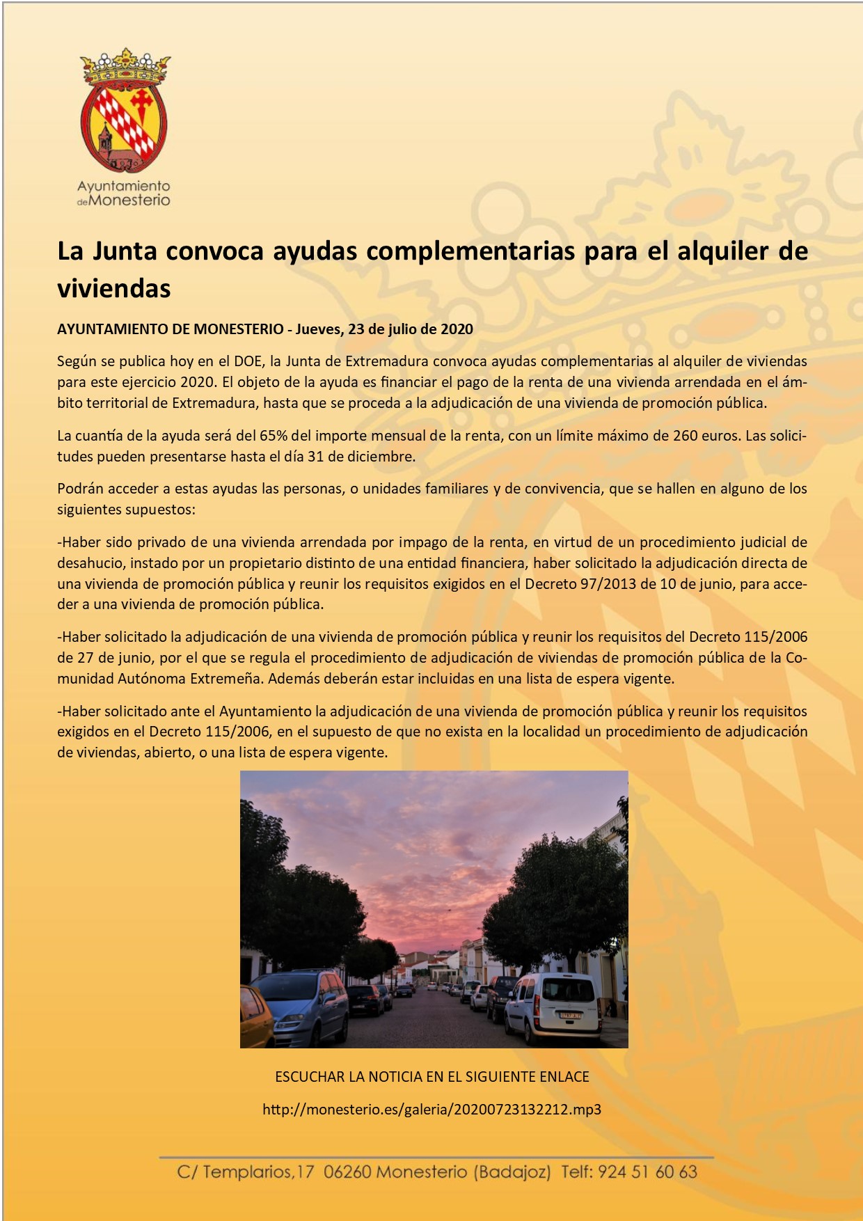 La Junta convoca ayudas complementarias para el alquiler de viviendas