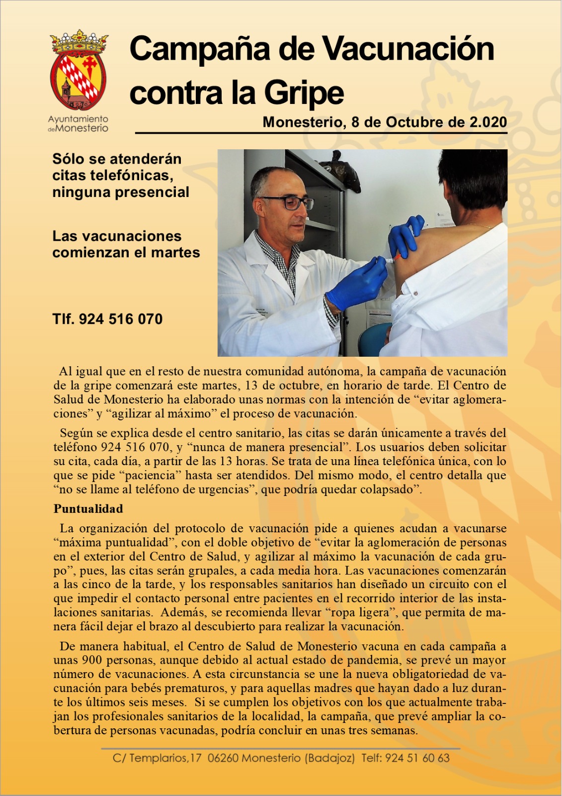 La campaña de vacunación contra la gripe comienza el próximo martes