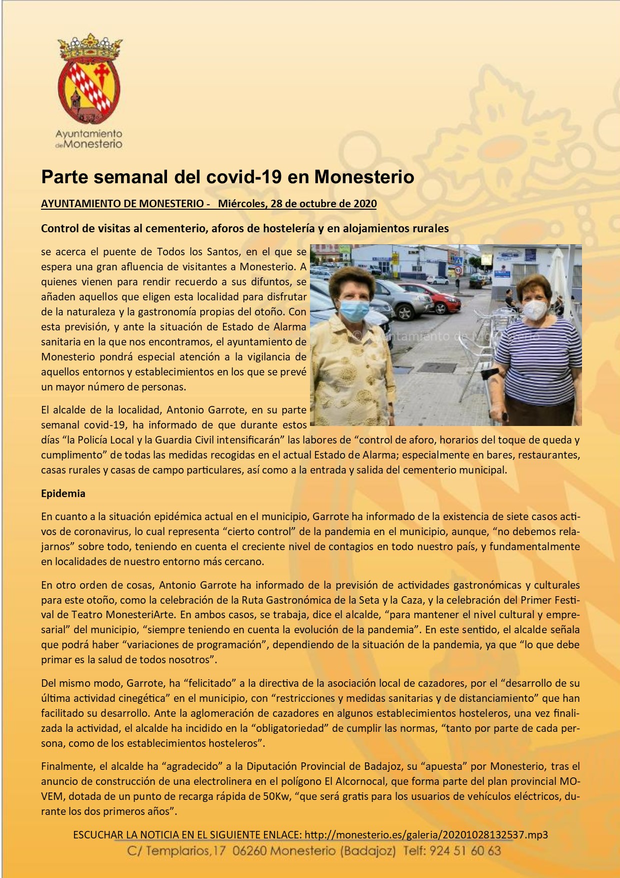Parte semanal del covid-19 en Monesterio