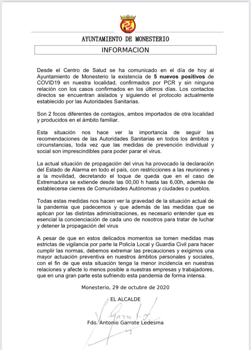 Actualización casos positivos por Coronavirus en nuestra localidad