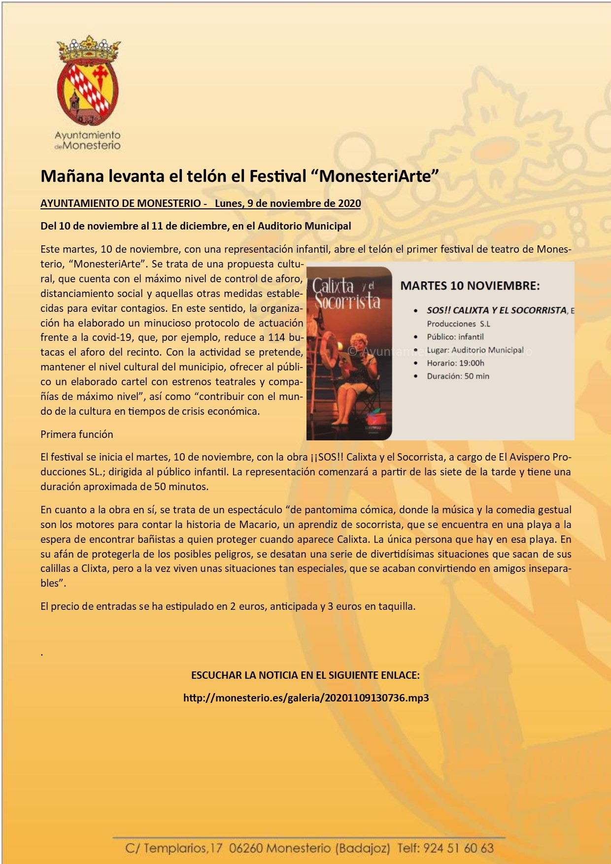 Mañana levanta el telón el Festival “MonesteriArte”