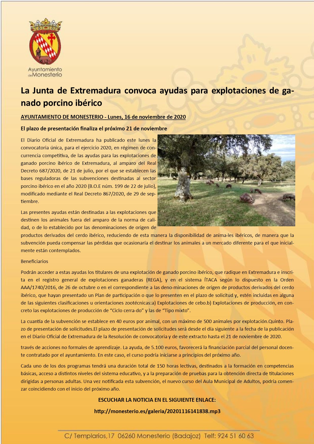 La Junta de Extremadura convoca ayudas para explotaciones de ganado porcino ibérico