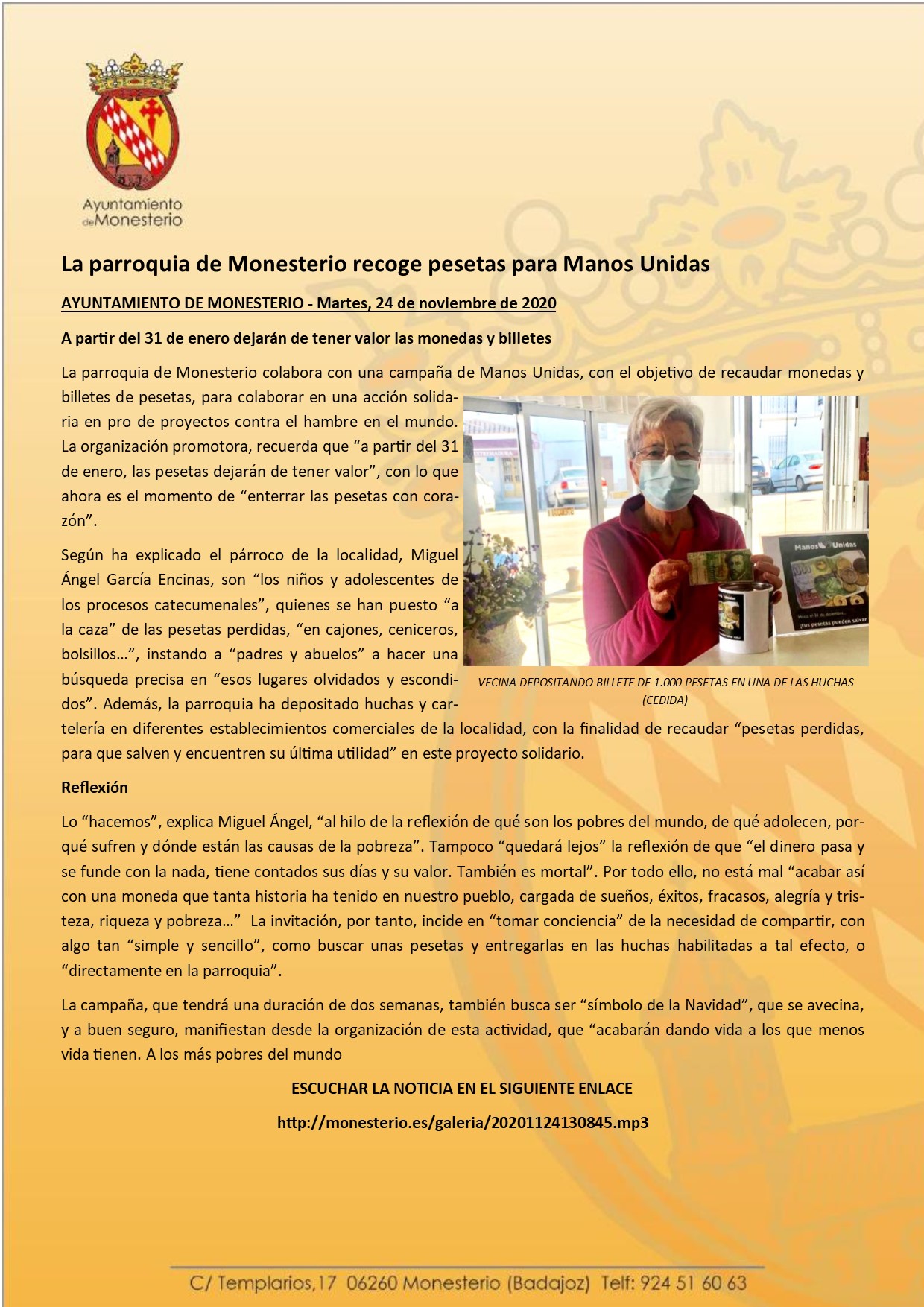 La parroquia de Monesterio recoge pesetas para Manos Unidas