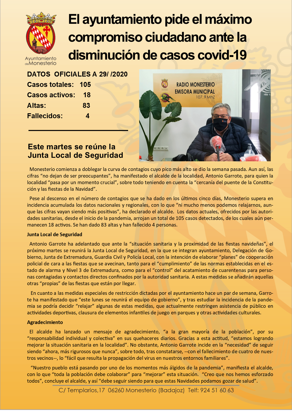El ayuntamiento pide el máximo compromiso ciudadano ante la disminución de casos covid-19