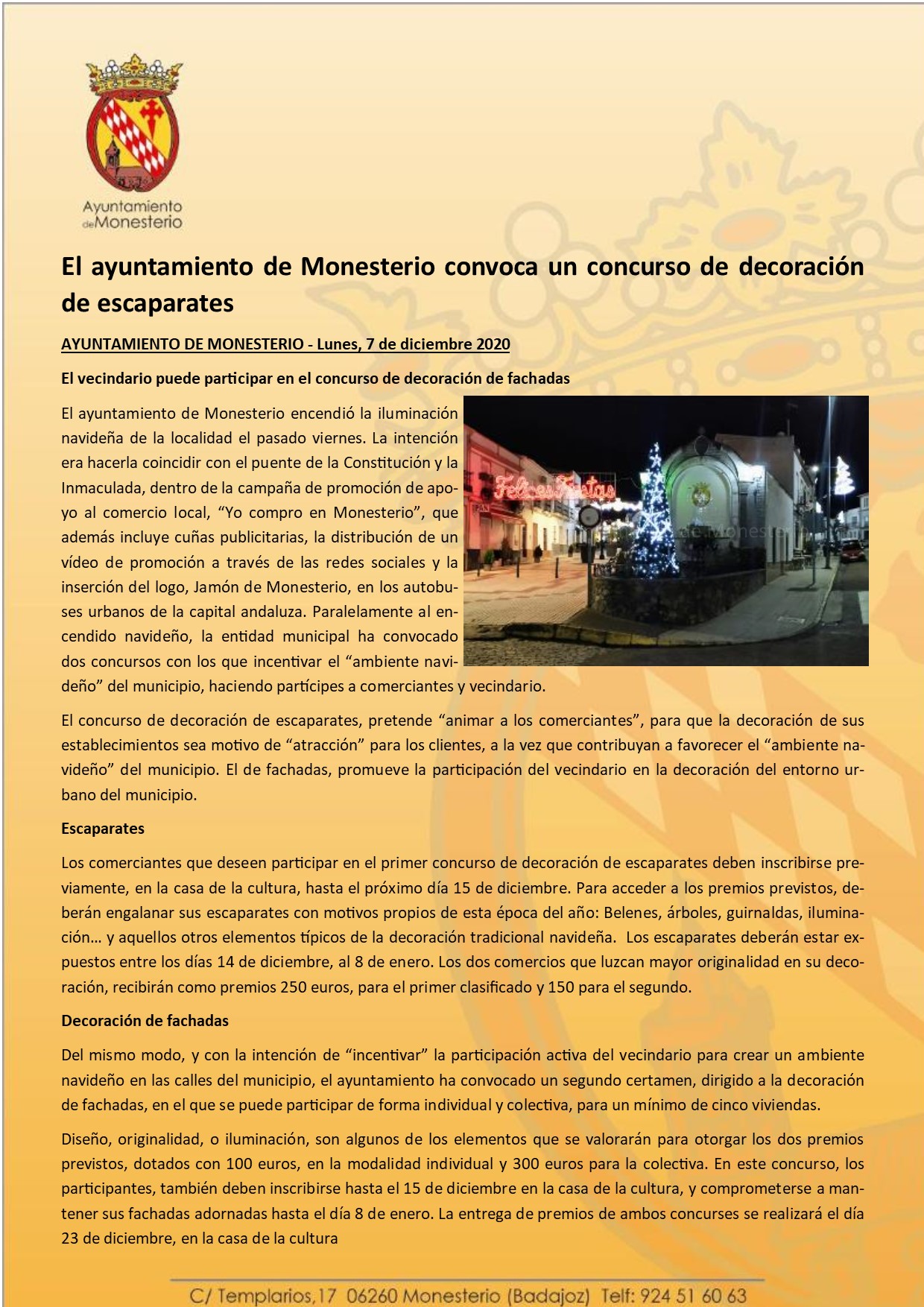 El ayuntamiento de Monesterio convoca un concurso de decoración de escaparates
